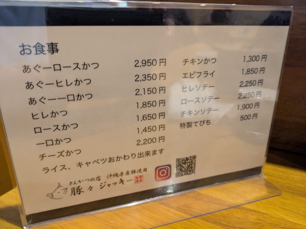 このお店、あぐー豚を提供するお店なのですが、あぐー豚とそうでない豚、両方のメニューがあります。
