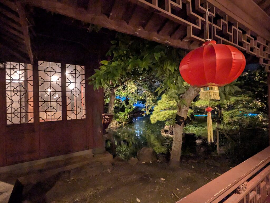 夜だけど無理やり観光したい!ということで那覇中心部から徒歩圏内の「福州園」にやってきました(写真ドへたくそですみません)